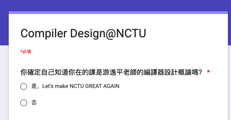 Hello! Welcome to the compiler course by Professor Yi-Ping You.