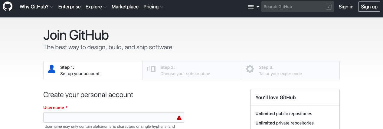 Notice that you are signing up for a GitHub account that represents yourself, and this account is temporarily used to join our course organization. You will definitely use this account in your future career, so it will represent you to a certain extent. It is highly recommended to think carefully about the name of your account.